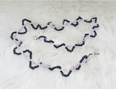 Se realizó utilizando alambre de cobre extraído de cables reciclados y acrílicos de bisutería.