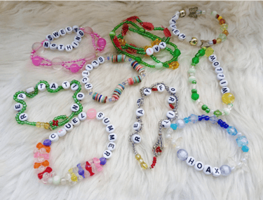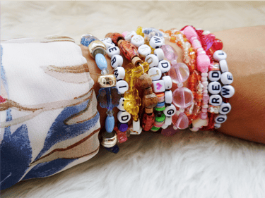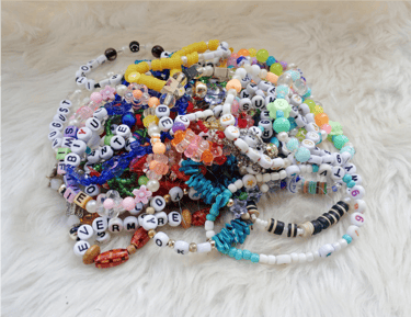 Pulseras de la amistad realizadas con acrílicos de bisutería.