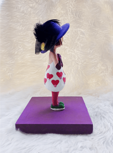 Modelado de personaje ficticio inspirado en la estética pop de la artista Yayoi Kusama.