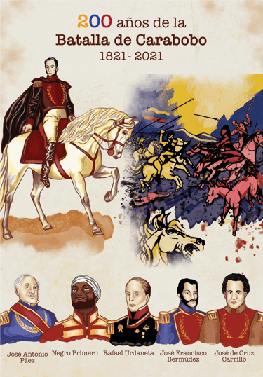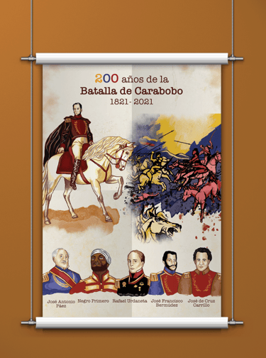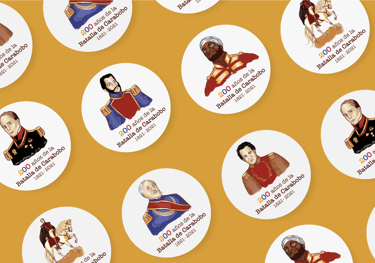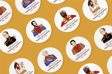 Pendón y propuesta de stickers con ilustración digital para celebrar los 200 años de la Batalla de Carabobo