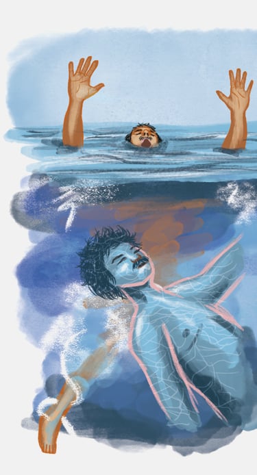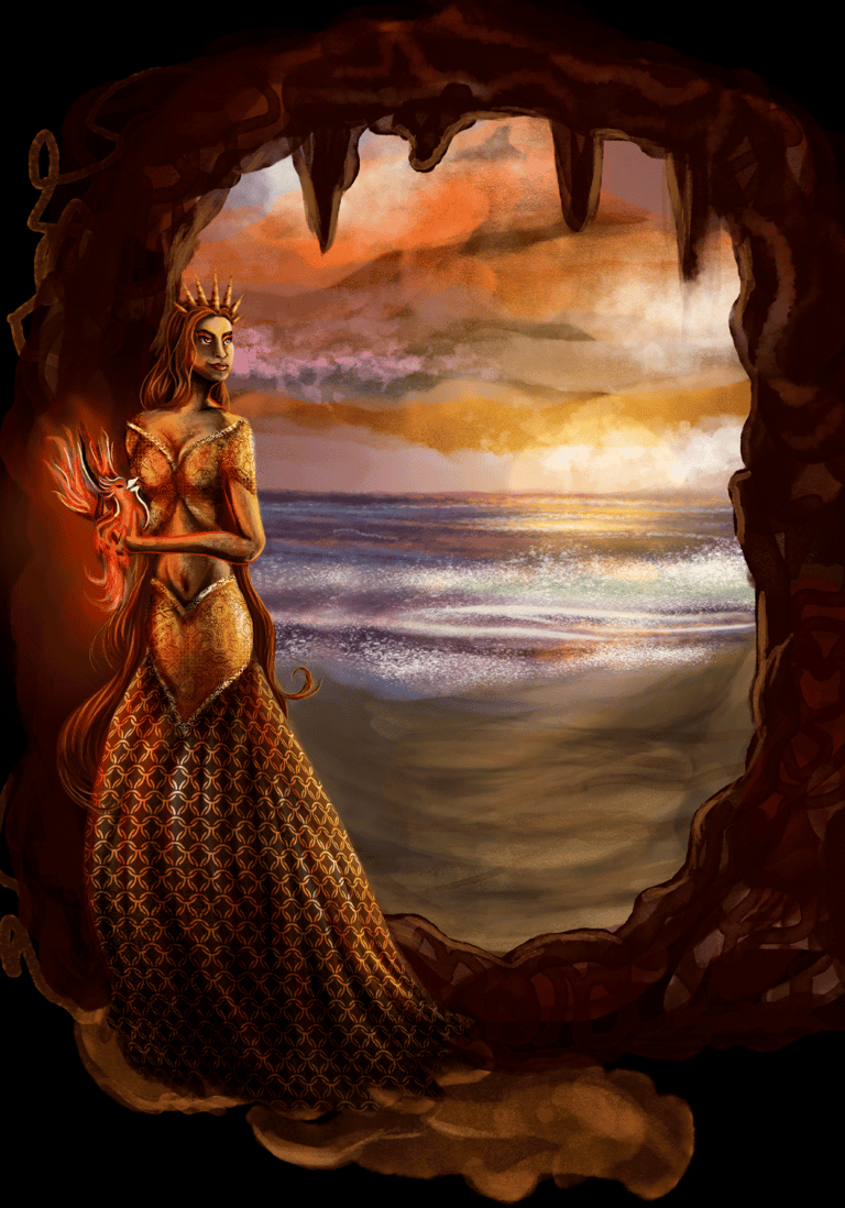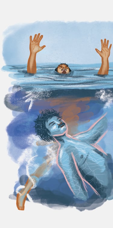 Muestra de ilustraciones digitales para el cuento Memorias de Agua, escrito e ilustrado por Zephora como un proyecto académico,
